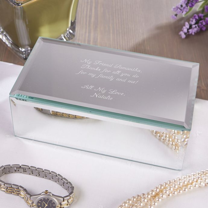 Protects your jewelry from dust and scratches, and easy open. Buy personalized mirrored jewelry boxes custom engraved with your own message. Glass jewelry box engraved with name.